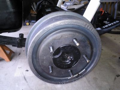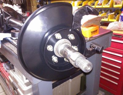 Remember that I was swapping in a later model open-knuckle front axle from a '73 CJ. This simplified things, but the axle still came with drum brakes. Luckily, it's a simple matter to convert to discs on this axle, requiring only later steering knuckles, spindles, disc backing plates and caliper brackets, and the rotors, pads, and calipers.