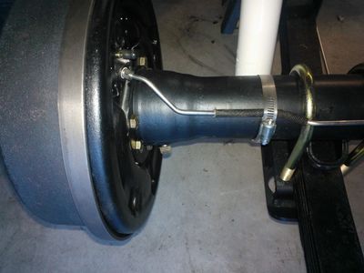 The rear drums (also from NAPA) were quick and easy, since I was dealing with OEM components. One item of note: since the 1970 CJ-5 used the transfer-case mounted parking brake, there is no provision for a rear axle drum parking cable. Also, a late CJ parking brake pedal assembly would not fit the CJ-2A body. After considering options, I chose an electrically activated line lock that I plumbed into the hard brake line just behind the proportioning valve. When activated, the line lock maintains the current hydraulic pressure to the rear brakes, effectively mimicking a cable actuated parking brake.
